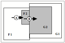 La prsence de la fentre contenant le pointeur complique un peu la situation. En effet, cette fois, des vnements de changement de focus seront envoys non seulement toutes les fentres situes entre la source et la destination dans la hirarchie, mais galement toutes les fentres situes entre la fentre contenant le pointeur et la destination, si cette dernire n'est pas une des extrmits. Ainsi, la fentre contenant le pointeur et toutes les ascendantes concernes par ce changement de focus recevront galement des vnements de type FocusIn (ou FocusOut, selon les cas) avec un champ detail NotifyPointer.